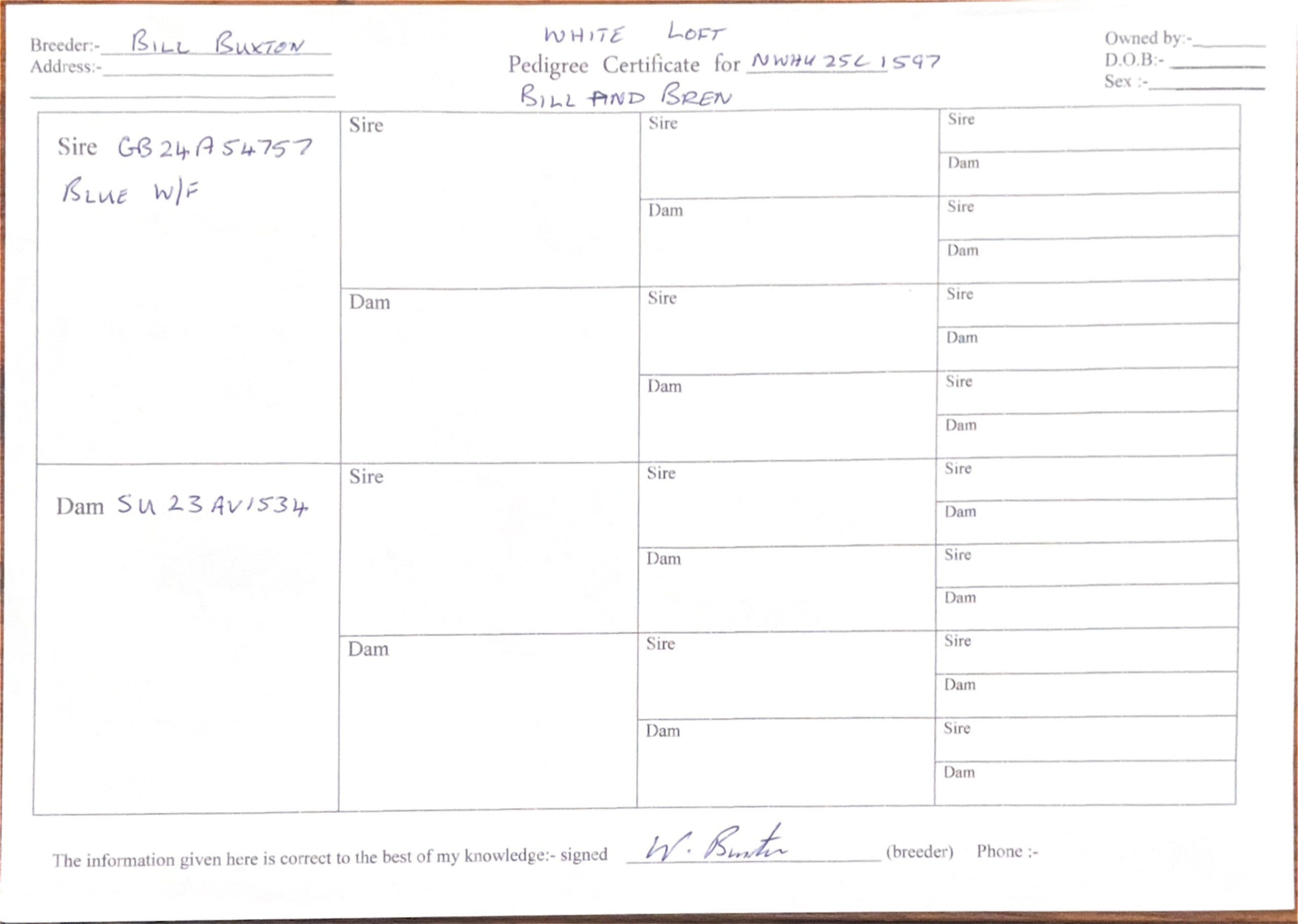 NWHU 25 C1597 Blue WF Hen “One Wing” winner of 19th Open Final Race 2025 and 47th HS1, 15th HDS2, 14th HJS3, 19th HS4, 36th HS5 and she was 4th Semi-Final. She is from the same loft that produced this year’s 11th placed winner Dark Delilah.