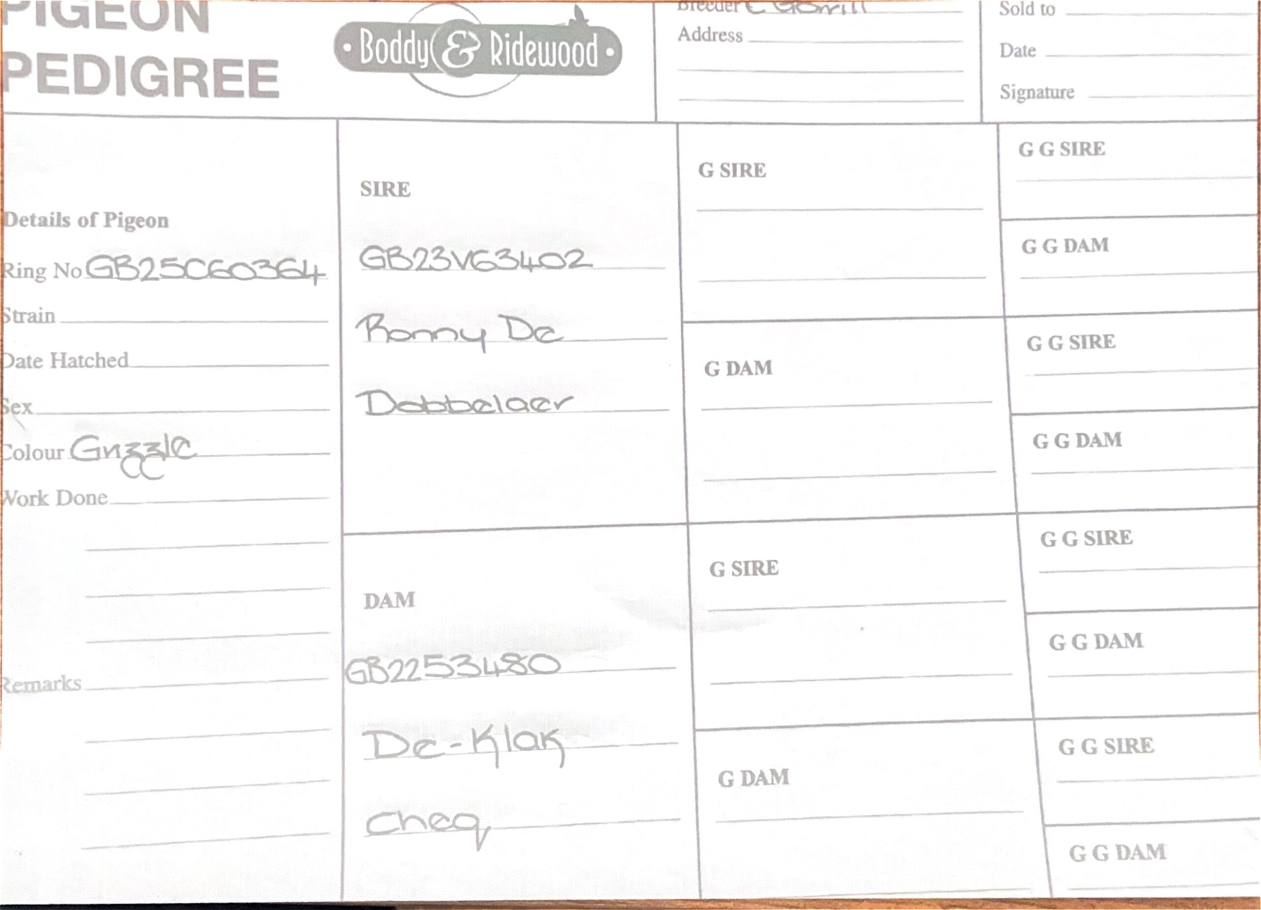 GB 25 C60364 Grizzle Cock “Gandalf” winner of 26th Open Final Race 2025 and 15th HS1, 29th HS2, 35th HS3, 48th HJS4, 35th HS5 and 24th Semi-Final.