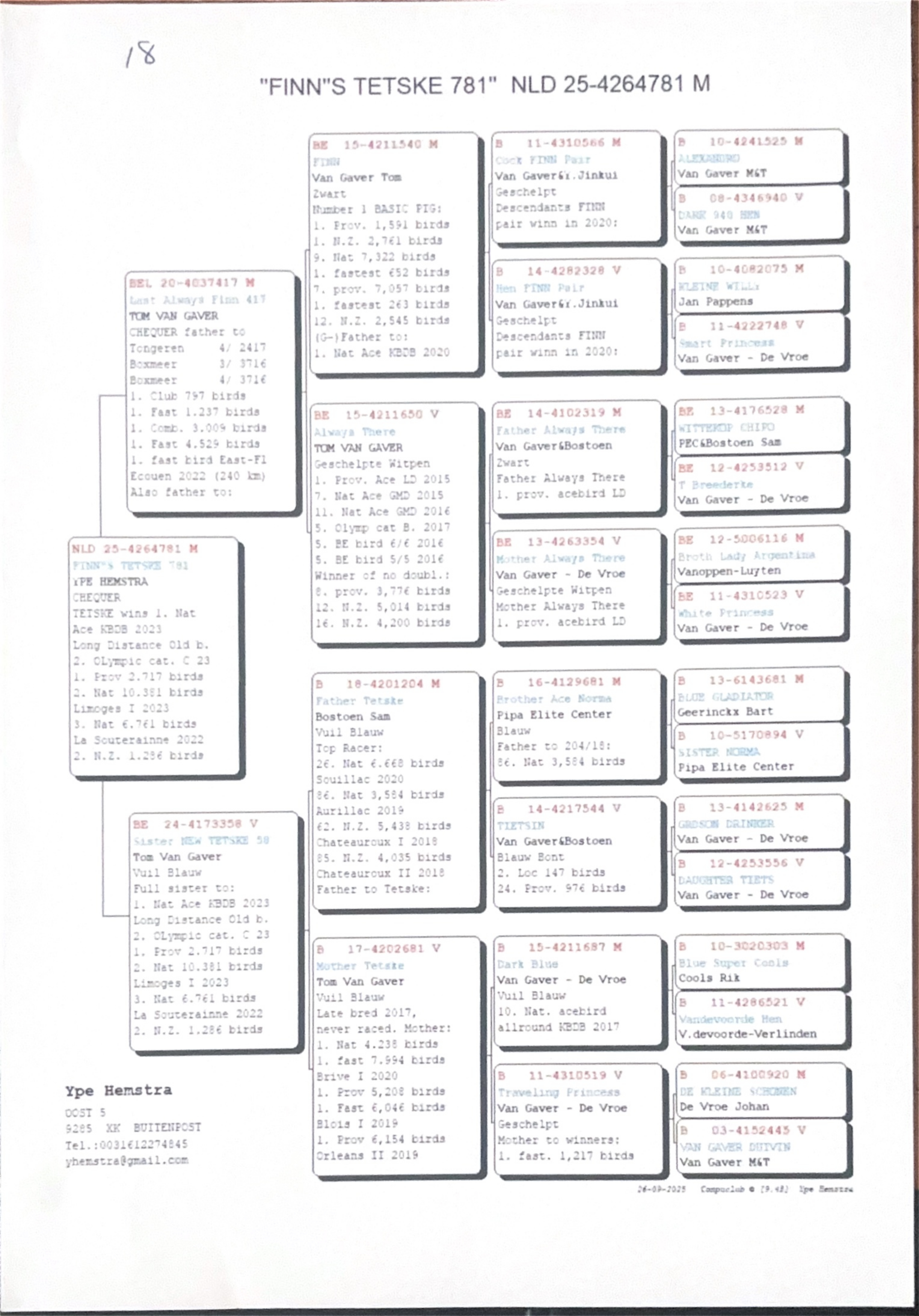 NL 25 4264781 Chequer Cock “Finn’s Tetske 781” he is another golden offer and a grandson of the No1 cock Finn. His mother is a full sister to New Tetske.